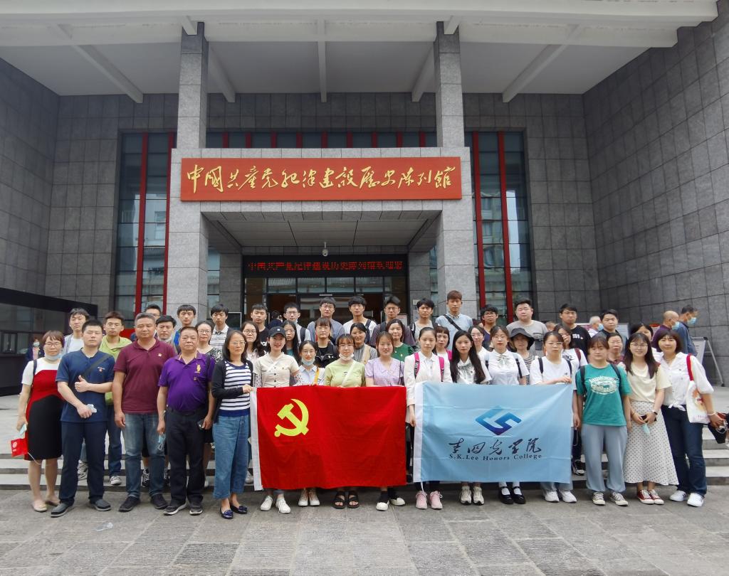 中国共产党纪律建设历史陈列馆紧邻中共五大会址,寓意着从党的监督执纪的起点出发,探寻监督执纪的伟大足迹,引导广大党员干部学史明理、学史增信、学史崇德、学史力行。陈列馆以《纪律建设永远在路上》为主题,以党的纪律建设历史为轴,利用405件(套)文物资料、700余幅珍贵历史照片,展现了纪律建设历程中涌现的一个个鲜活的人物故事。在讲解员生动的讲解下,前去参观的师生不仅了解到党纪律建设的丰富历史内容,更从这些历史人物的光辉事迹中汲取到了奋进的力量。
