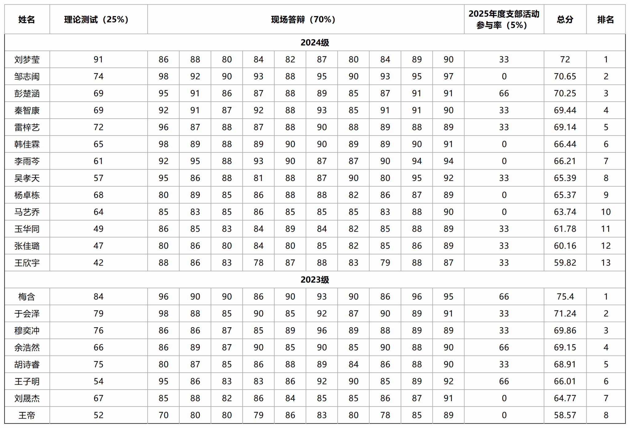 为确定发展对象人选,壮大支部队伍建设,十大买球的正规网站本科生党支部于2026年3月12日在行政楼510召开发展对象甄选大会,根据答辩人理论测试、现场答辩等情况进行考核,现将评选结果公式如下: