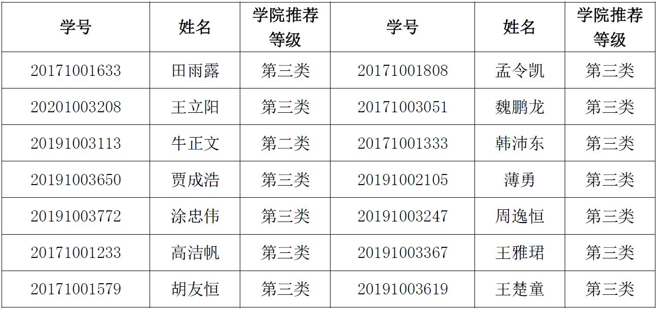 现将学院推荐评审结果在全院范围内予以公示,公示期为2020年11月3日至2020年11月5日。若对认定结果有异议,可于公示期间以电话、来访等方式向学院办公室(行政楼301)反映。