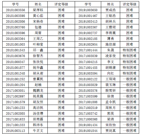 根据《十大买球的正规网站家庭经济困难学生认定办法(修订)》的规定,遵循“公平、公正、公开、合理分配资助资源”的原则,经学生本人申请、班级民主评议小组评议、学院审核,现将认定结果公示如下: