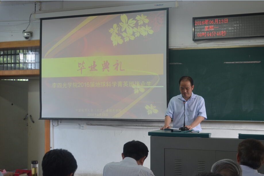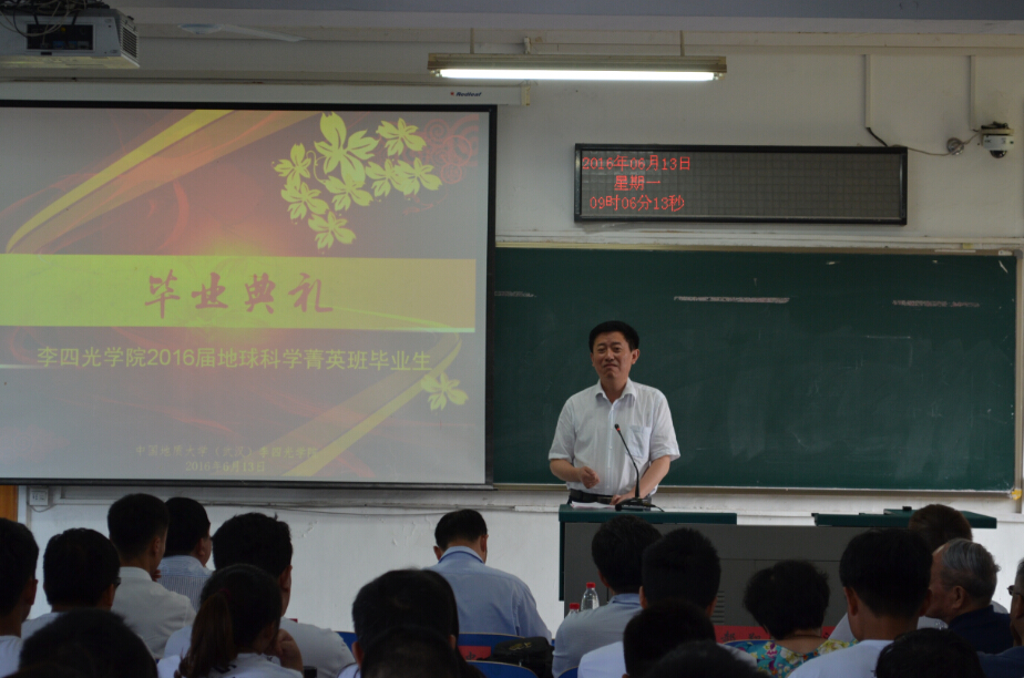 校党委副书记傅安洲对菁英班在协同育人联合培养模式下,四年来取得的成绩给予了肯定。他希望,同学们在即将开始的新征程中,珍惜荣誉,牢记使命,在科学大师李四光的指引下,弘扬李四光精神,爱国奉献,追求真理,敢于担当。