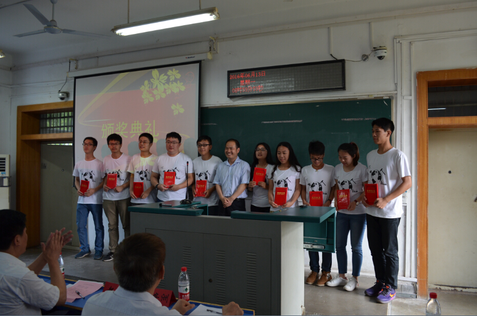 倪四道为地球科学菁英奖学金获奖学生代表颁奖。
