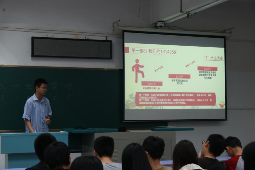 活动伊始,团员青年齐唱中国共产主义青年团团歌《光荣啊,中国共青团》,共同观看了5月2日习近平总书记在北大考察的新闻视频。随后校青年马克思培养主义工程精英班学“习”之路宣讲团,为团员青年带来了“迈进新时代,实现新作为”的主题宣讲,宣讲团成员用数字说话,以“1314258”为关键数向团员青年全面解读了十九大报告,鼓励团员青年在从先辈们的期望中树立梦想,从勇气与壮举中滋养梦想,争做不断砥砺前行的新时达地大人。