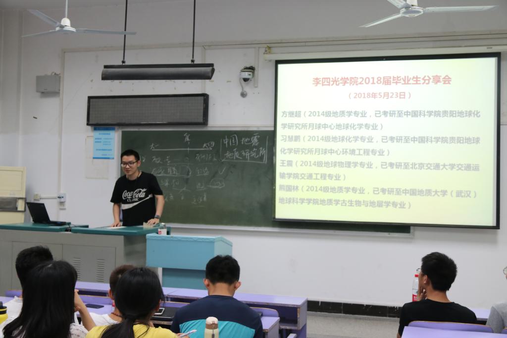 紧接着上场的是已考研至中国科学院贵阳地球化学研究所月球中心地球化学专业的方继超同学。他几乎为大家教科书般展示了一位高智商“学渣”的逆袭经历,同样提出了转折点的重要性,分享了自己大学前期惨淡的绩点与破釜沉舟的考研之路,与大家共勉。