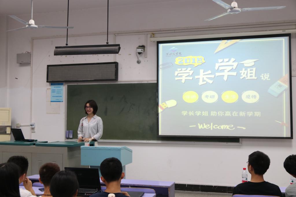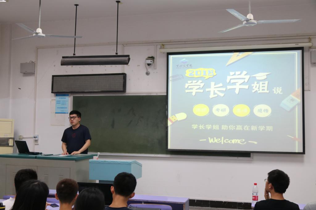 紧接着进行分享的是跨专业考研至北京交通大学交通运输学院交通工程专业的王震同学。他对大一大二的学弟学妹们说,如果不知道今后的方向,就先做好当下的事;对大三的学弟学妹们说,要勇于突破自己的心理舒适区,并结合自己的备考经历给同学们提出了一些建议。