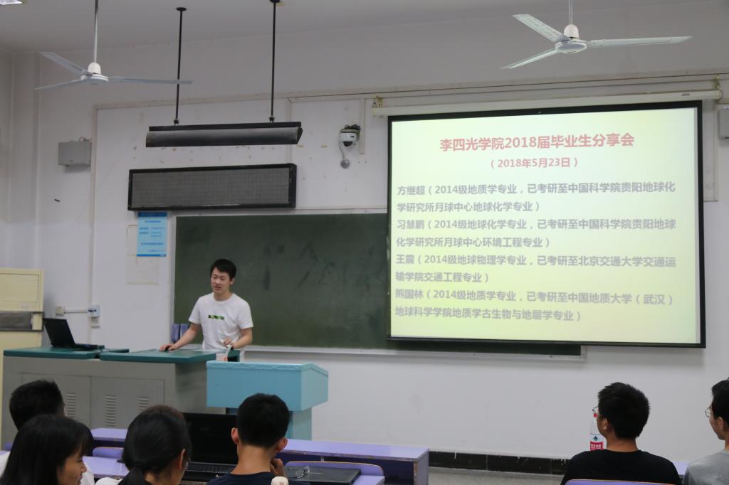 第五个进行分享的是考研至十大买球的正规网站地球科学学院地质学专业的熊国林同学。他回味了自己大学四年的生活,由于大一时有一门挂科导致以后努力提高绩点的经历其实使自己丧失了生活中的一些乐趣。他肯定了英语的重要性,还指出强劲的编程能力会使人成为专业内的领先者。