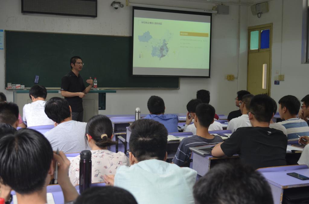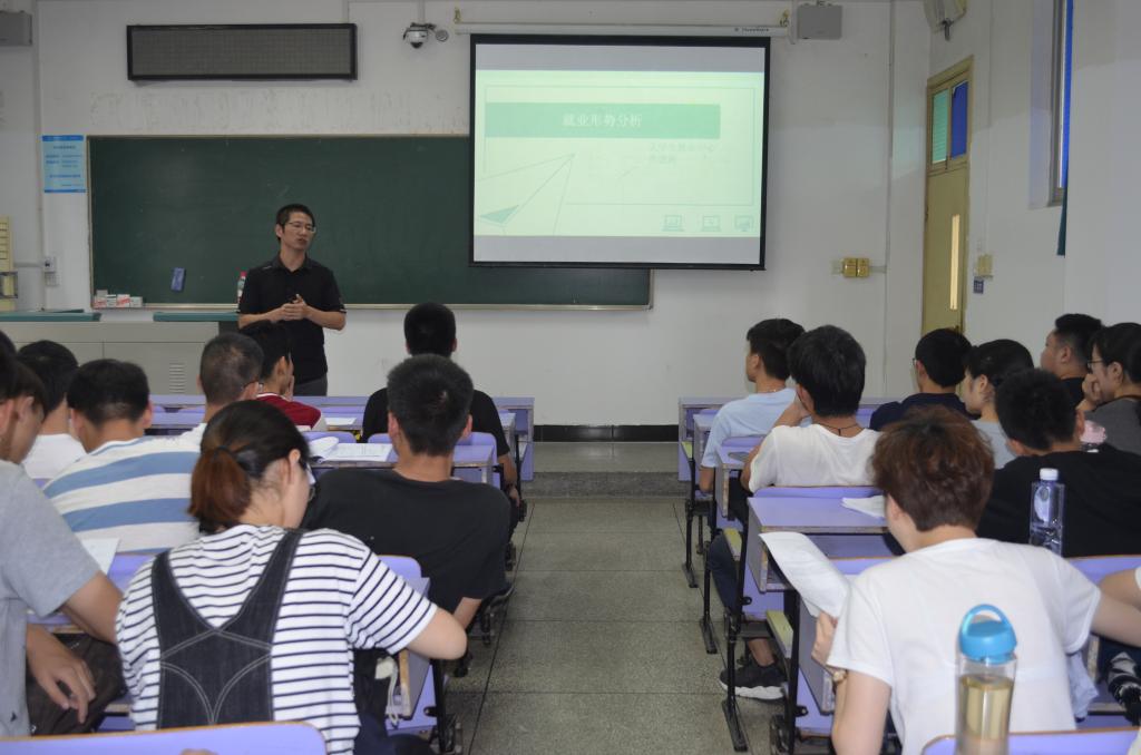 侯老师向同学们系统讲解了当前经济形势、地质行业形势,详细介绍了我校近几年毕业生的升学、出国、创业及就业情况,并结合我院升学率高的实际提出了具有很强指导性的建议,对同学们提出早规划、快行动、努力向前的希望。
