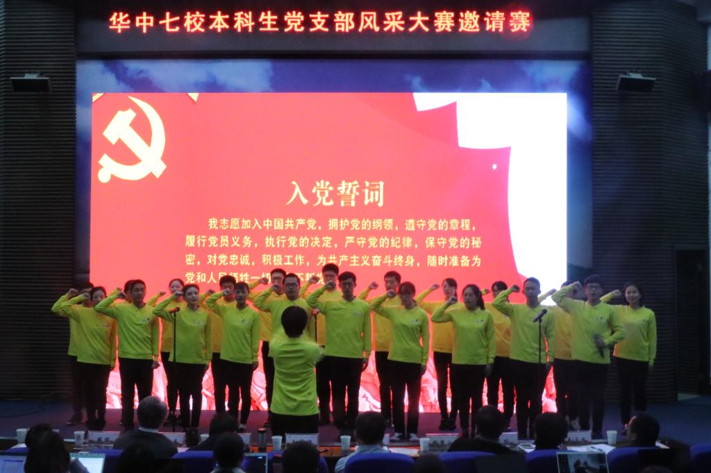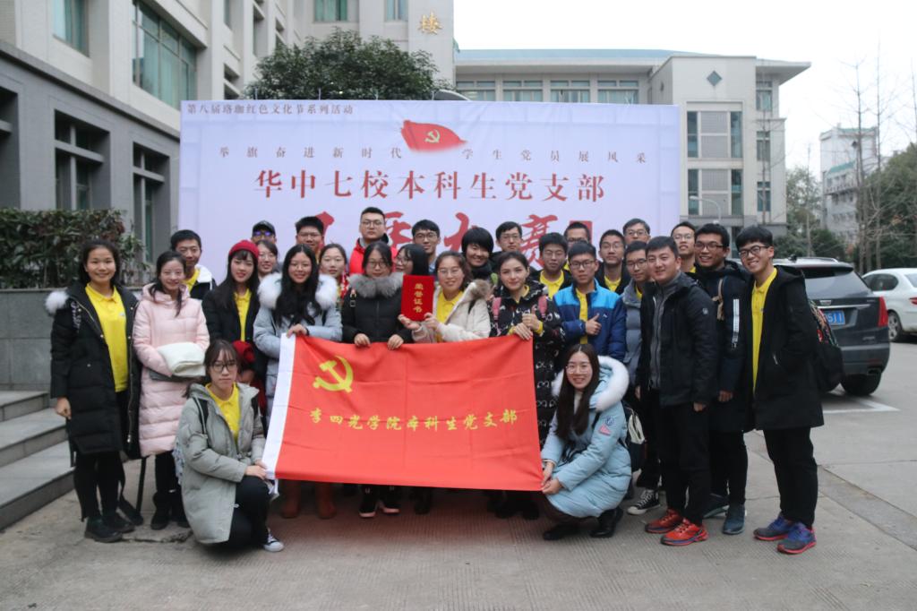 12月8日下午,由武汉大学党委学生工作部主办的华中七校本科生党支部风采大赛在武汉大学景林报告厅隆重举行。我院本科生党支部代表我校与来自武汉大学、华中科技大学、武汉理工大学、华中师范大学、华中农业大学、中南财经政法大学的共10支党支部代表队围绕“举旗奋进新时代,学生党员展风采”为题同台切磋,展示特色。最终,我院本科生党支部脱颖而出,获得大赛一等奖。