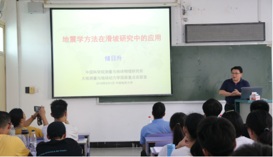 9月3日下午,中国科学院测量与地球物理研究所研究员储日升老师出席我院2019级新生开学典礼,并与我院新生进行了交流。储老师以“地震学方法在滑坡研究中的应用”为主题为19级带来了大学的第一场专业讲座。储老师以深入浅出的语言,结合生动形象的图片、视频以及PPT特效,向大家阐述了滑坡的类型、地震等级的测量以及地震学方法在滑坡研究以及预防滑坡灾害之中的应用,为同学们了解地质知识、增强专业认同打开了一扇窗,让同学们受益匪浅。