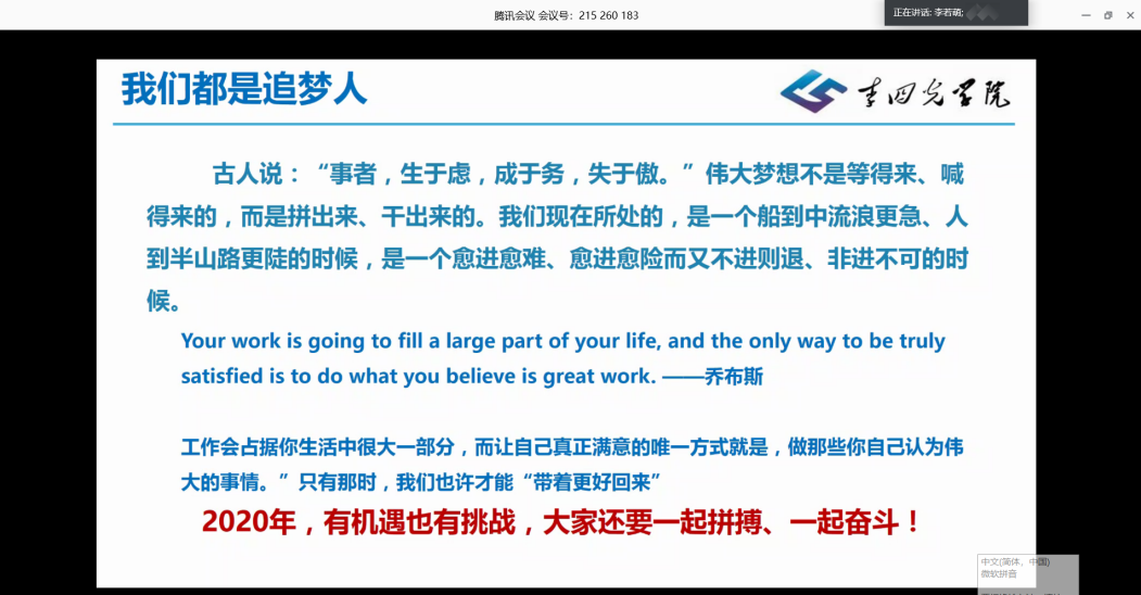 (通讯员:左晨)2020年5月16日晚7点,十大买球的正规网站2017级年级大会在腾讯会议线上顺利举行。本次会议由年级辅导员李若萌主持,学院副院长曾希、办公室刘老师及2017级全体同学参加。