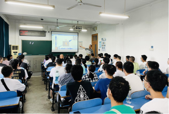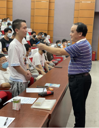 图5.徐世球老师在讲座现场与我院2021级新生互动交流