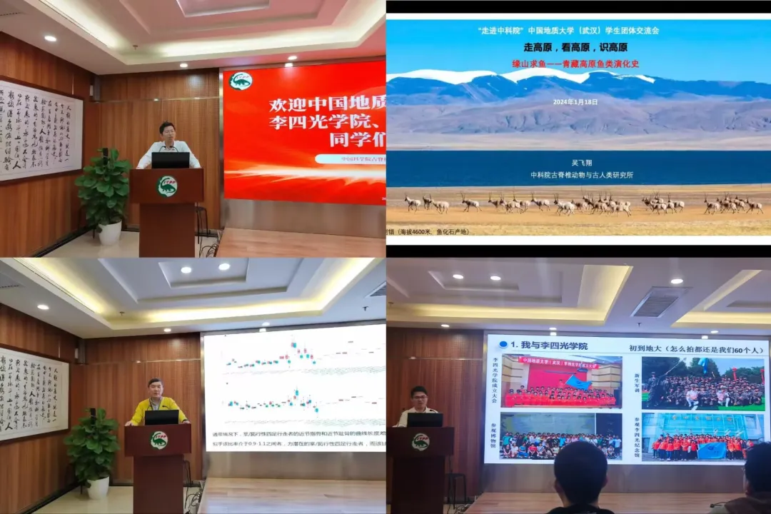 学术报告结束后,研究生部崔老师向同学们简要介绍了研究所招生培养情况。期间,大家观看了科学家精神教育微电影《科技脊梁——杨钟健》,并参观了各个实验室。