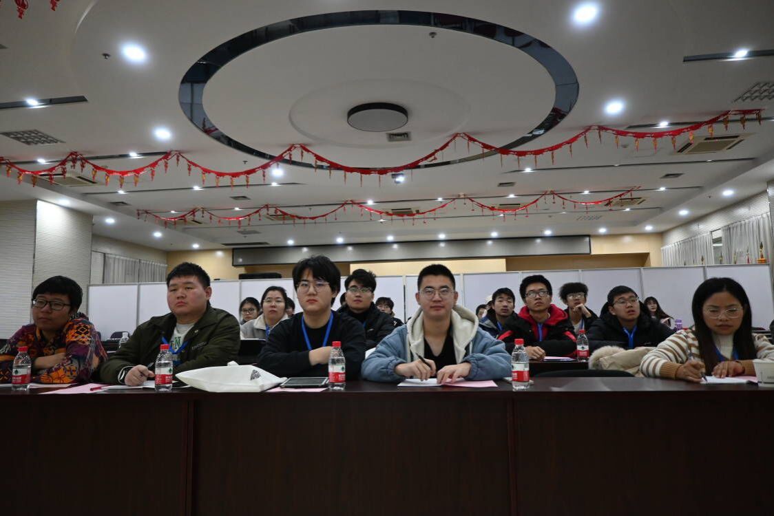 (同学们认真听讲座的照片)