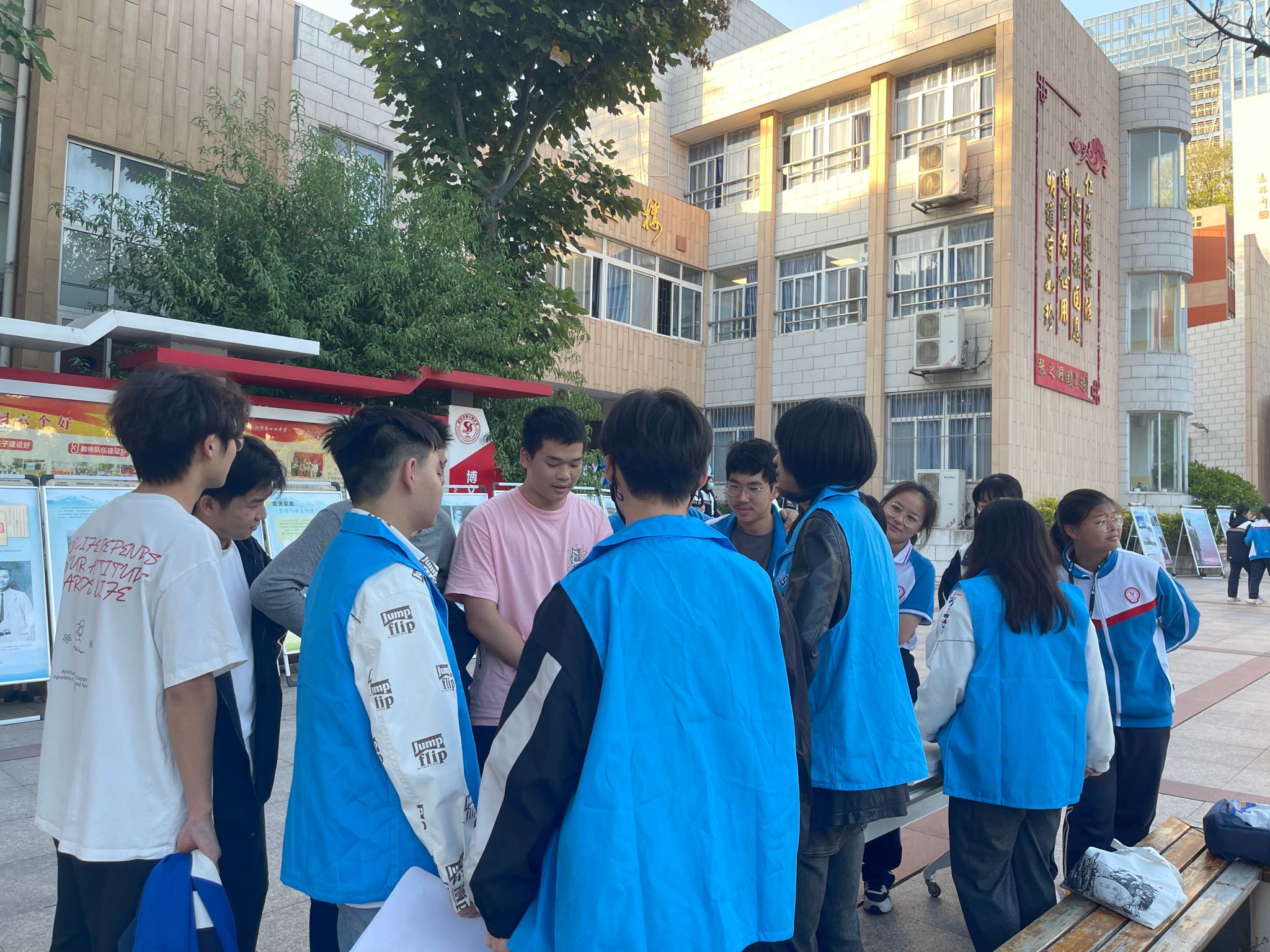 在10月的武汉,清晨的寒意仍带着秋末的余韵,而志愿者们则以一颗赤诚之心和满腔的热情,高效地完成了活动场地的布置。随着晨光初现,越来越多的高中生汇聚到活动现场,李四光纪念展随之拉开序幕。