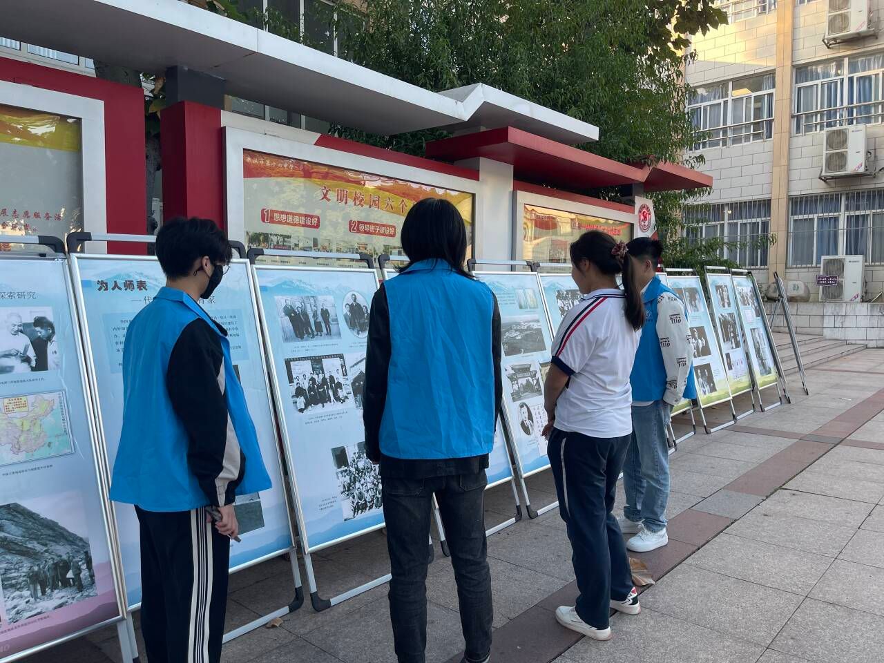 展览内容丰富多彩,涵盖了李四光先生的生平事迹、地球科学研究、爱国情怀以及地质方面的科普知识。正值课间,学生们纷纷被吸引而来,他们带着对知识的渴望和对先辈的敬仰,驻足于展板前,细细品味着李四光先生的传奇人生。
