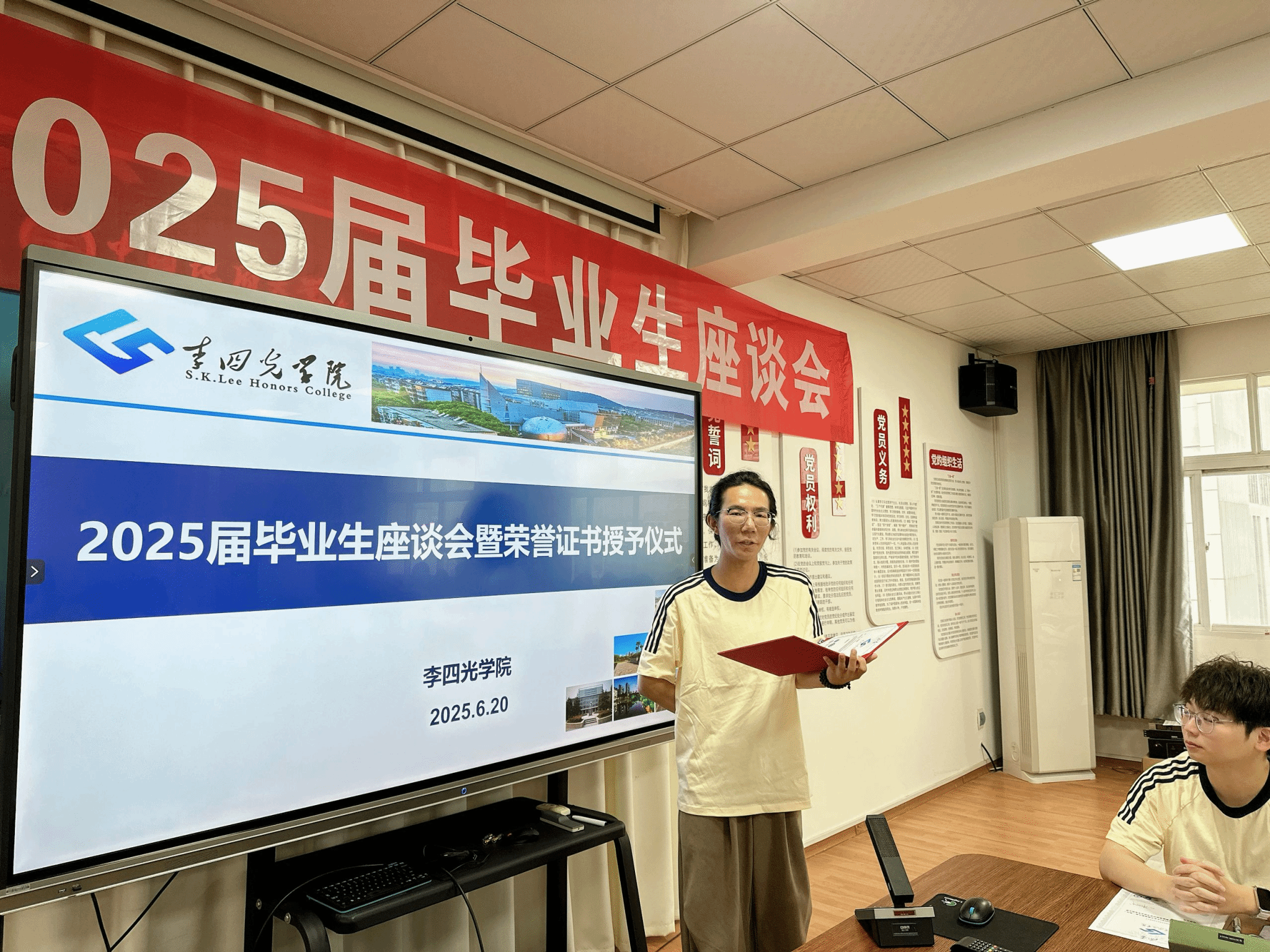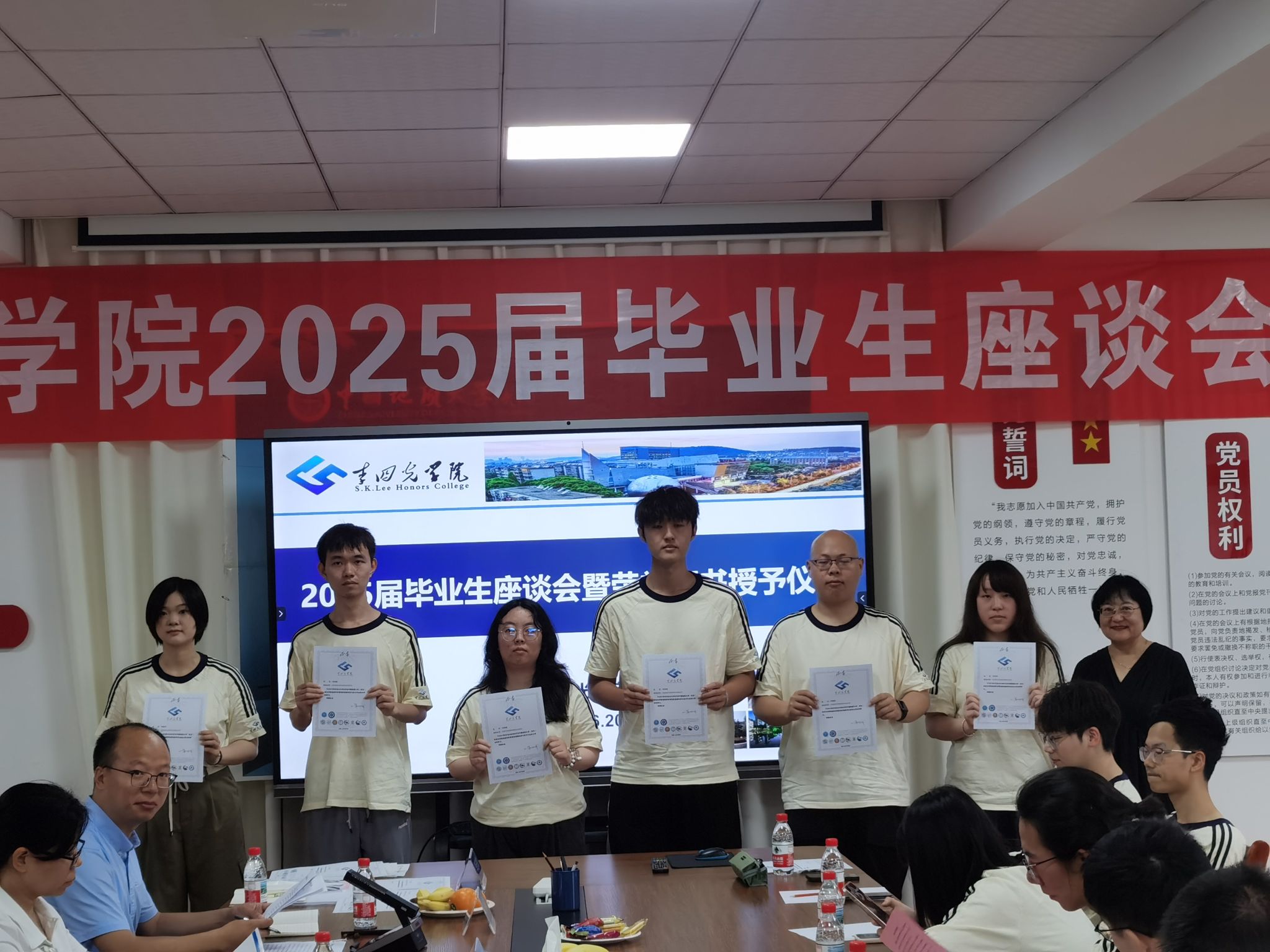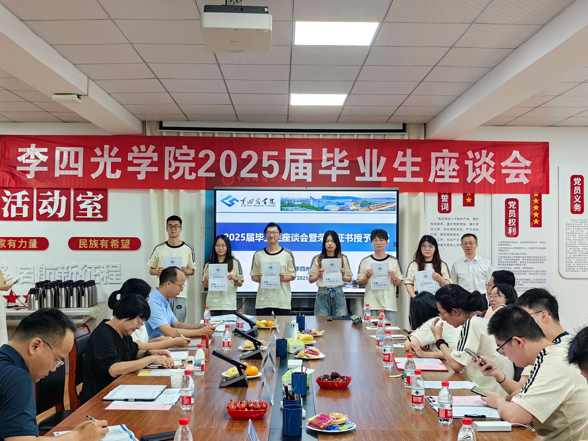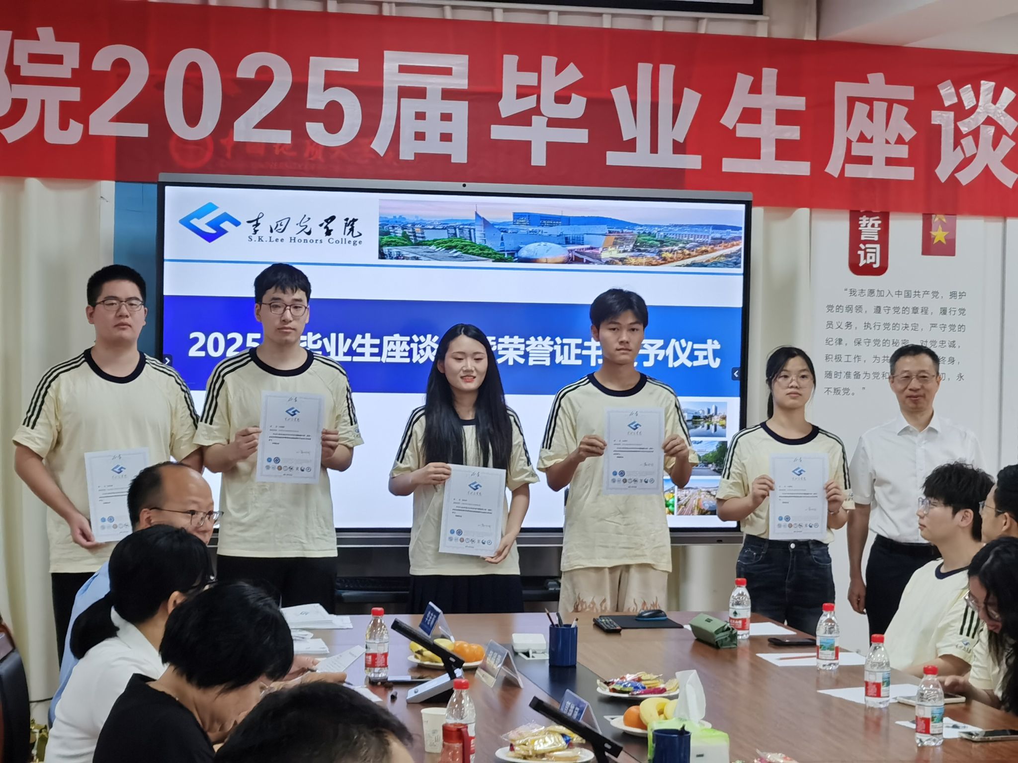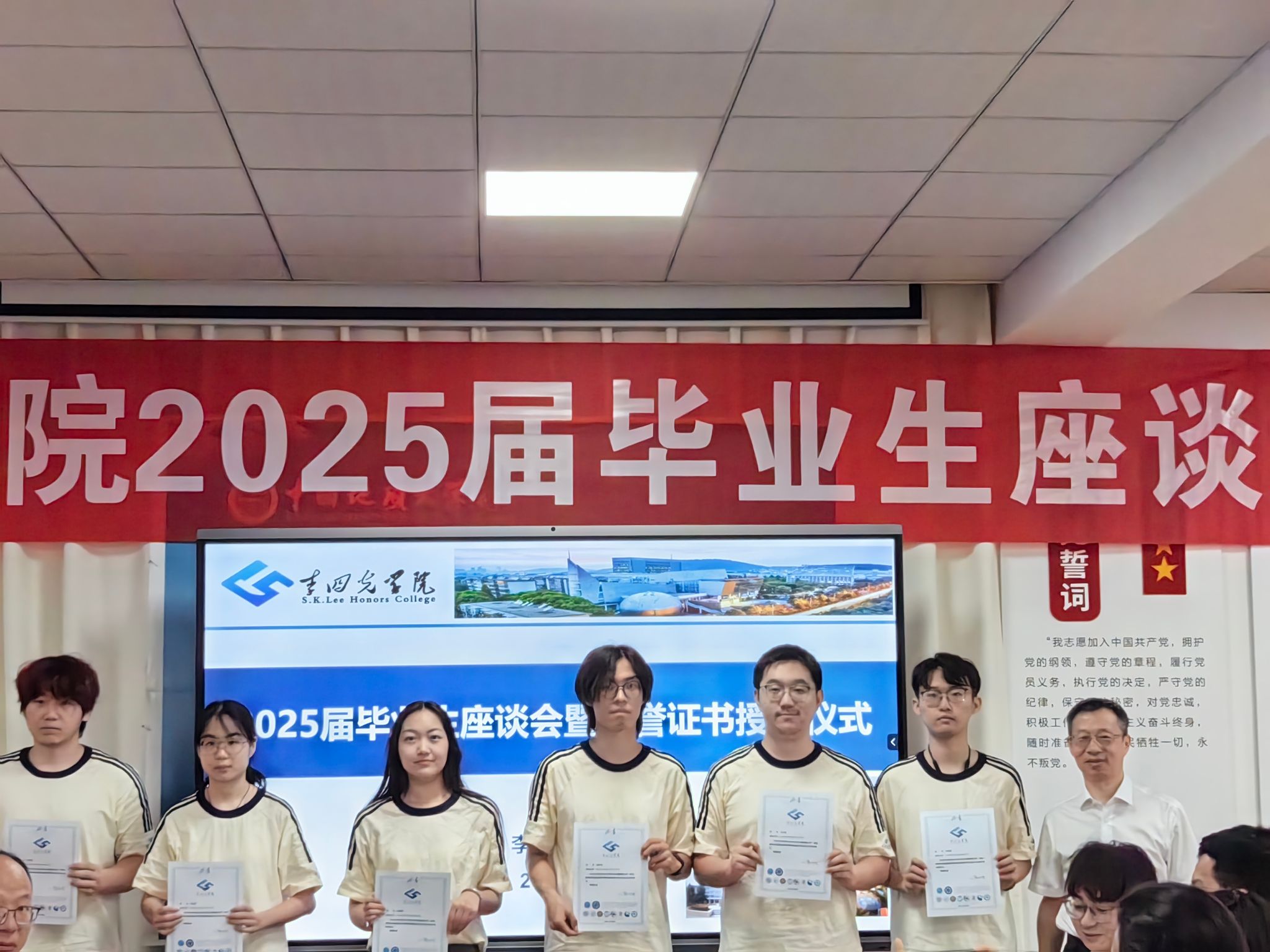 座谈会开始,章军锋副校长和陈文武部长分别为每一位毕业生颁发拥有唯一编号的荣誉证书,自2022年开始,十大买球的正规网站的每一位毕业生的荣誉证书均由院长谢树成院士亲自签名,这不仅是李院学子独一无二的身份ID,更代表了毕业于十大买球的正规网站的荣耀和责任,手持证书合影留念之时,每位同学的心中都满怀激动与自豪,这是学院“科教结合,协同育人”的又一高光时刻。