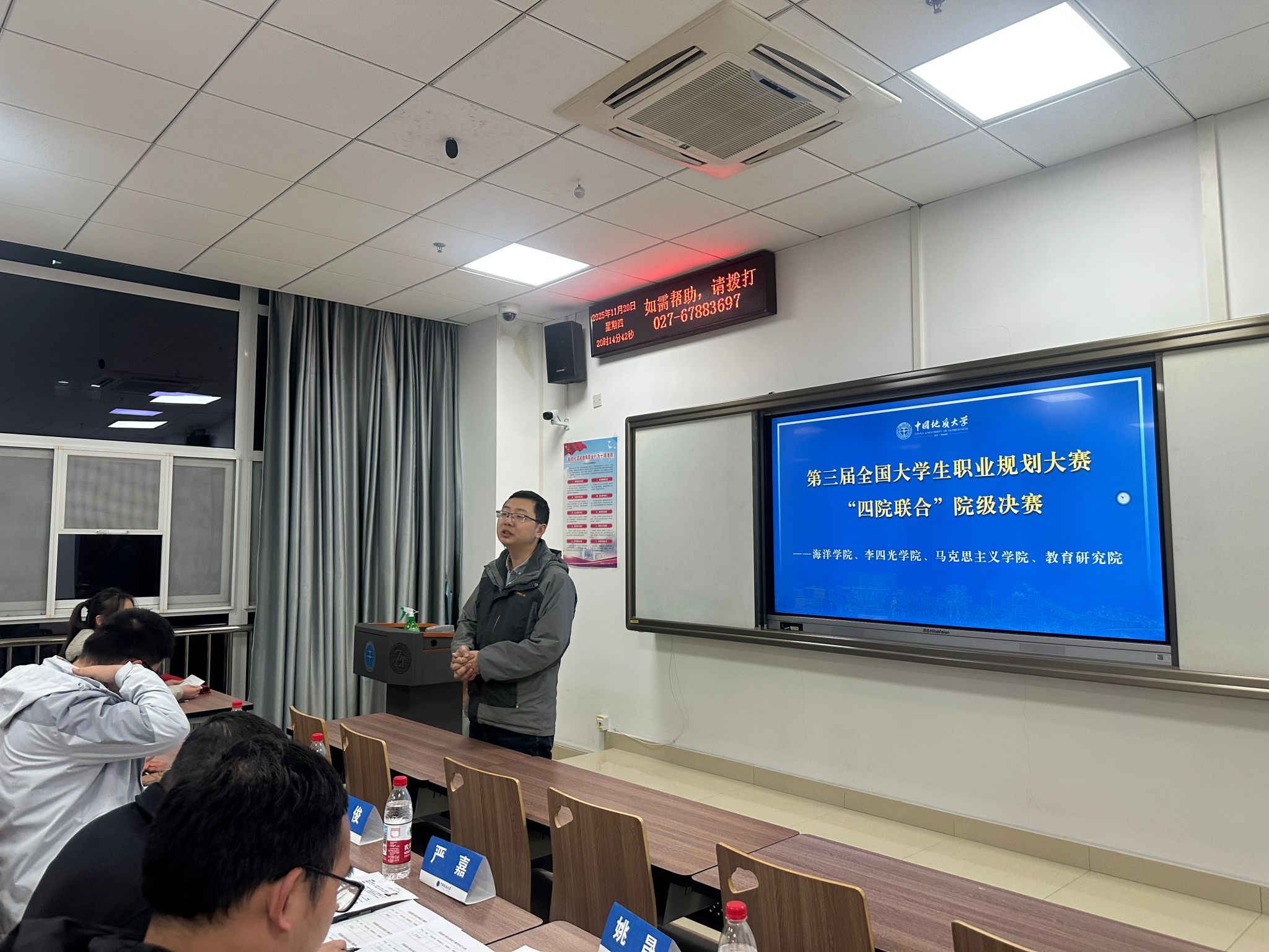为深化高校生涯教育内涵建设,强化就业指导服务实效,引导大学生树立科学职业观与发展观,11月20日晚,由马克思主义学院、海洋学院、十大买球的正规网站、教育研究院联合主办的第三届大学生职业规划大赛决赛在东区综合楼顺利落幕。经过院级初赛、专题培训等多轮严格筛选与激烈角逐,来自四院的12名优秀学子从众多参赛者中脱颖而出,在决赛舞台上充分展现了新时代青年的职业追求与青春担当。