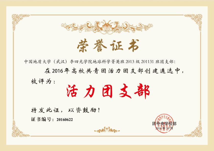 热烈祝贺我院201131班团支部在团中央2016年开展的高校“活力团支部”创建遴选活动,获得全国高校“活力团支部”荣誉称号!特此报喜!祝贺他们,也希望其他团支部以他们为榜样,把我们的支部建设得更加充满活力、更加坚强有力。