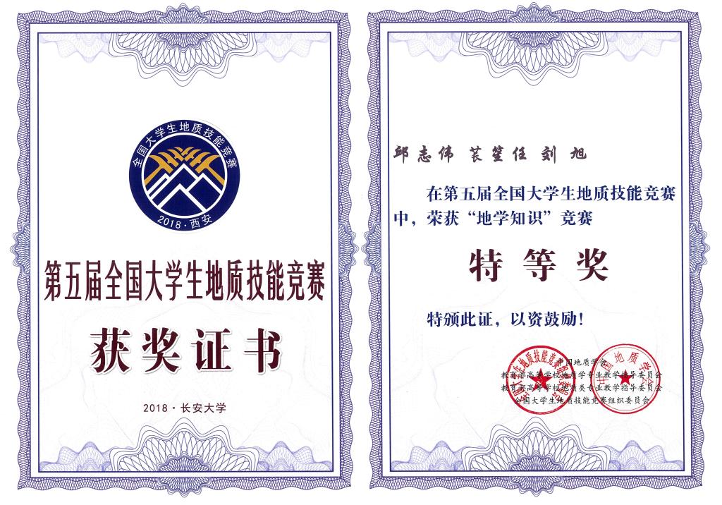 恭喜我院2015级刘旭和熊巧同学在全国本科地质技能大赛中取得1项特等奖、3项一等奖和团队特等奖的好成绩!