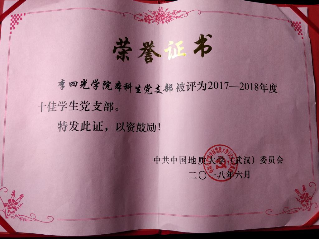十大买球的正规网站本科生党支部被评为2017-2018年度十佳学生党支部,这是我院学生党支部连续四年获得此项荣誉!