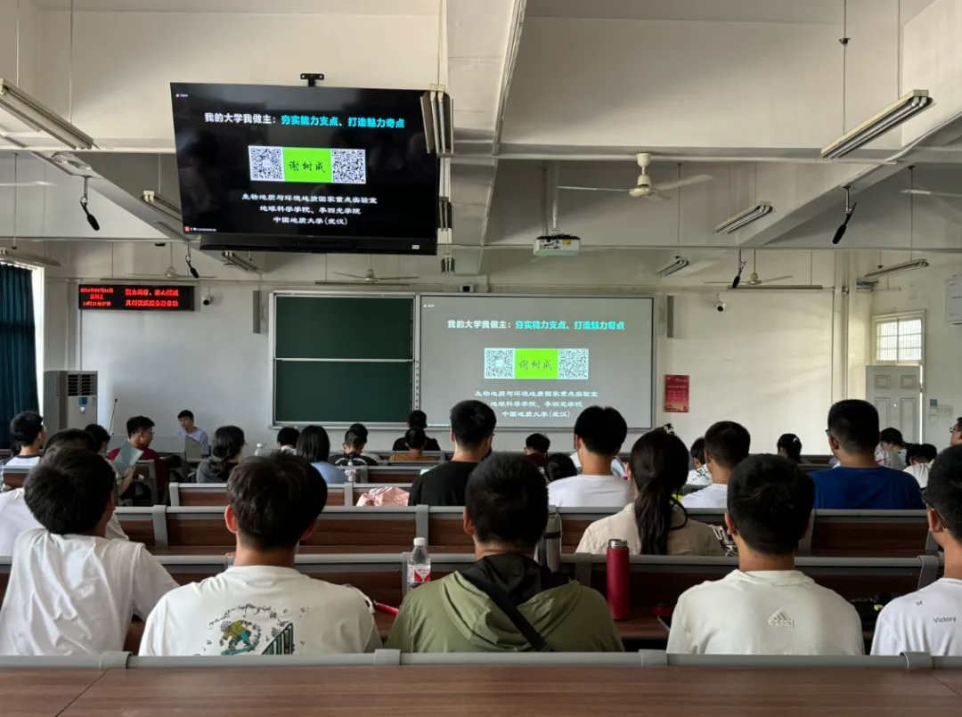 9月4日上午8点30分,校党委书记刘杰在西区弘毅堂为全体新生带来开学第一课《勤学笃行,追梦圆梦,做新时代挺膺担当地大人》。学院学生共分为两组进行聆听,除了线下参与学习的学生代表外,兼职辅导员查琴积极组织新生们在北综楼302观看同步直播。开学第一课不仅揭开了了解建校历史的新篇章,也让同学们汲取了地大优秀地质人的榜样精神,纷纷表示将努力学习,立志为地球科学的发展贡献自己的力量。