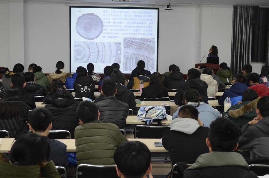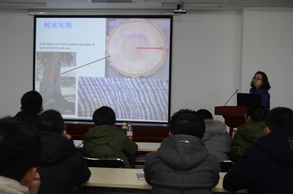 12月18日晚19:00,十大买球的正规网站2017年地球科学导论课第四讲在图书馆十楼报告厅顺利开课,中科院地球环境研究所蔡秋芳老师为我院2017级学生带来“利用树木年轮资料研究气候变化”主题讲座。