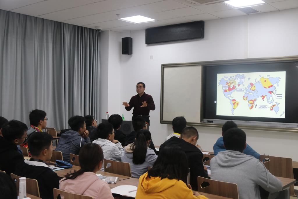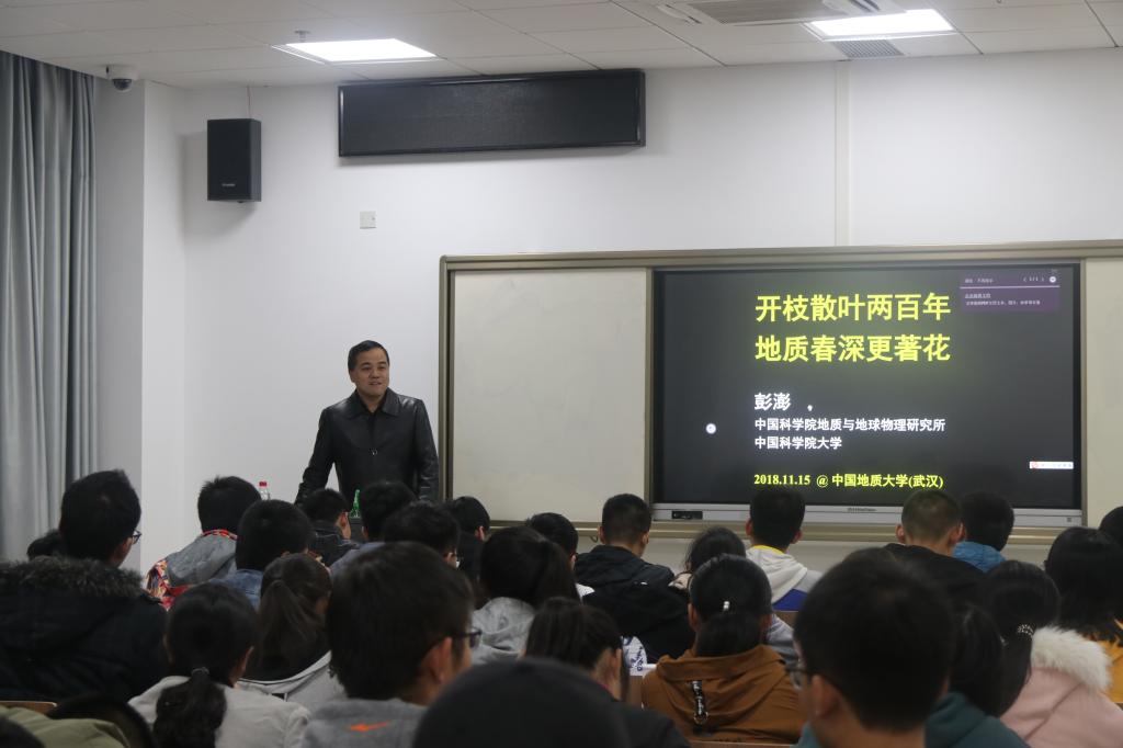 11月15日下午16:00,十大买球的正规网站2018年地球科学导论课第一讲在东区综合教学楼B0106室顺利开课,中科院地质与地球物理研究所彭澎老师为我院2018级学生带来“开枝散叶两百年,地质春深更著花”主题讲座。
