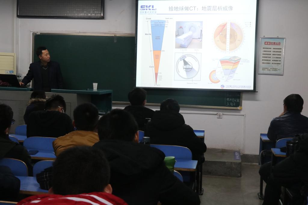 12月10日晚上19:00,十大买球的正规网站2018年地球科学导论课第四讲在教一楼203教室顺利开课,中科院测量与地球物理研究所李志伟老师为我院18级学生带来“地壳精细结构成像与资源勘查及强震孕震机理研究”主题讲座。