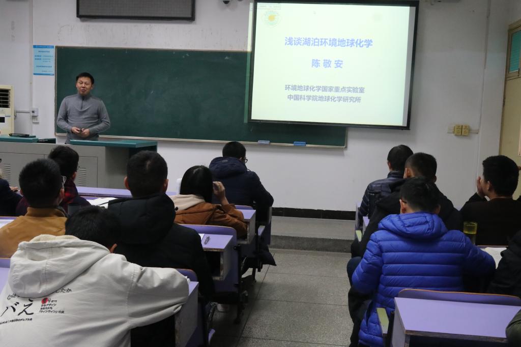 12月11日上午8:00,十大买球的正规网站2018年地球科学导论课第五讲在教三楼203教室顺利开课,中科院地球化学研究所陈敬安老师为我院18级学生带来“湖泊环境地球化学”主题讲座。