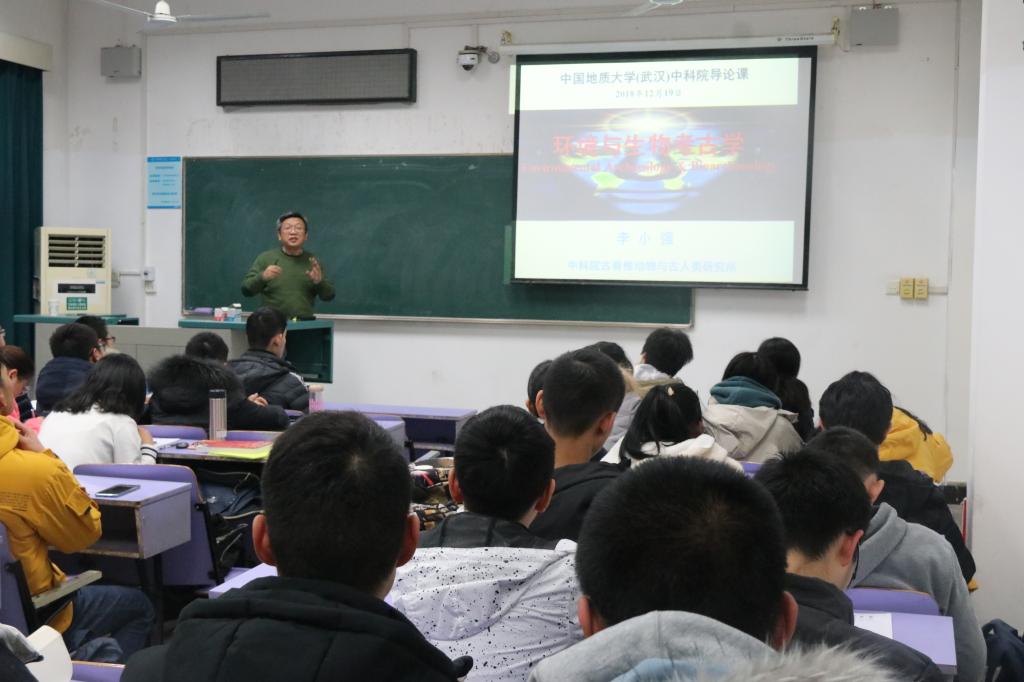 12月19日,十大买球的正规网站2018年地球科学导论课第六讲在教三楼203教室顺利开课,中科院古脊椎动物与古人类研究所李小强老师为我院18级学生带来“环境与生物考古学”和“‘人类世'与农业起源研究”两堂主题讲座。