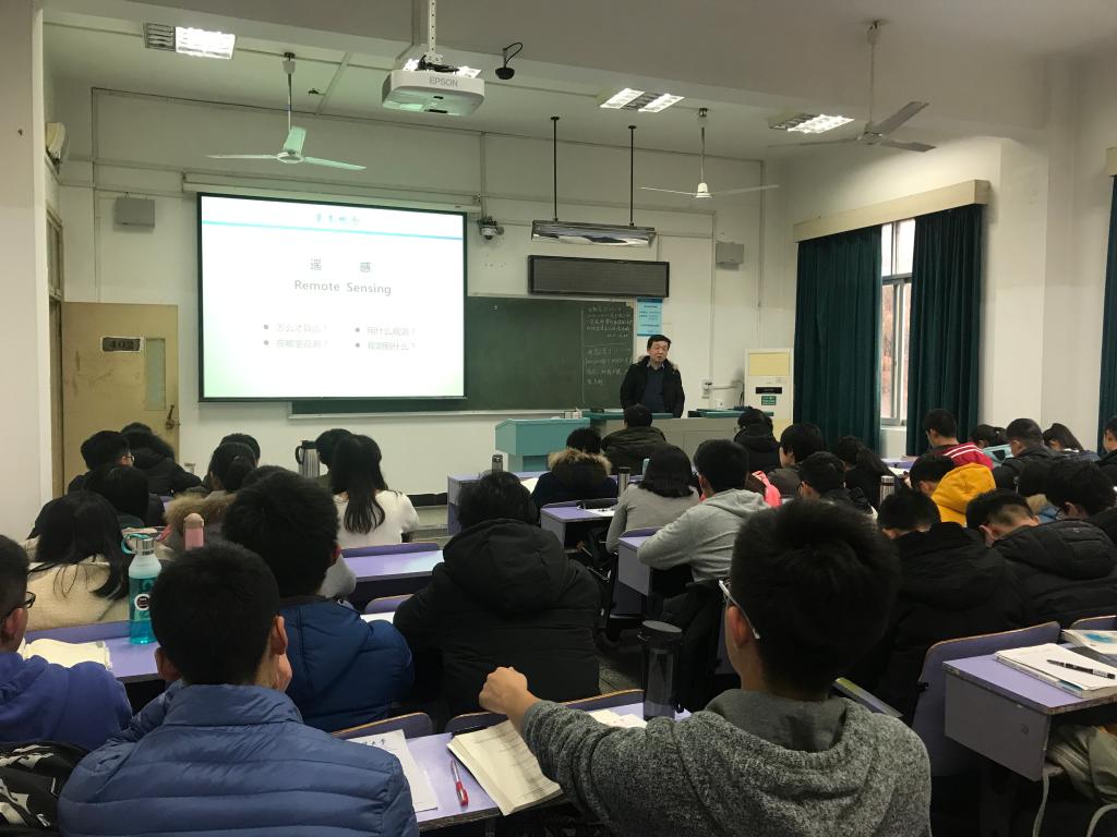 12月20日下午16:00,十大买球的正规网站2018年地球科学导论课第七讲在教三楼403教室顺利开课,中科院测量与地球物理研究所凌峰老师为我院18级学生带来“遥感技术基础与多学科应用”主题讲座。