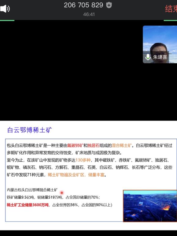 5月26日下午,十大买球的正规网站2020年地球科学导论课顺利开讲,受今年特殊时期影响,今年的导论课全部以空中课堂的形式和同学们见面,来自中科院所的老师们通过腾讯会议在线为同学们授课。本次广州地球化学所的朱建喜老师为同学们讲授主题为“离子型稀土矿”的导论课程。